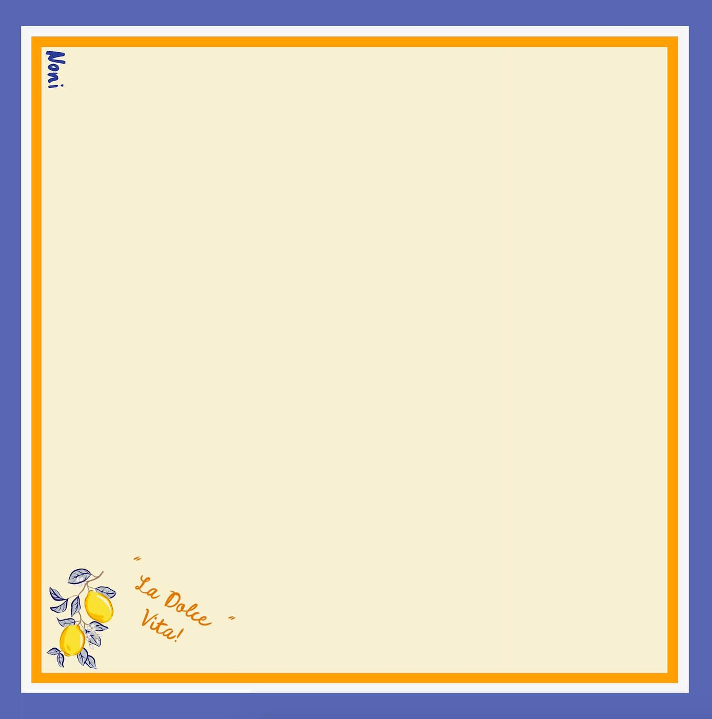 Meet the La Dolce Vita Scarf—a minimalist square scarf inspired by Italian summers. A soft ivory base is finished with a classic blue-and-gold border and a delicate lemon detail in the corner, giving you that effortless “dolce vita” feeling without being loud.